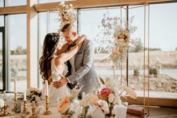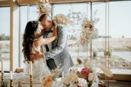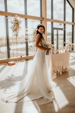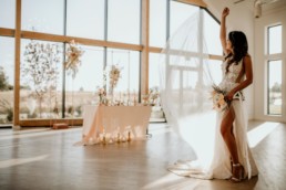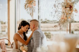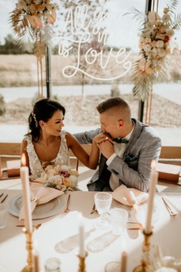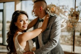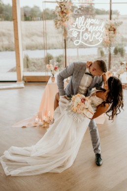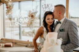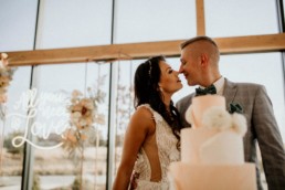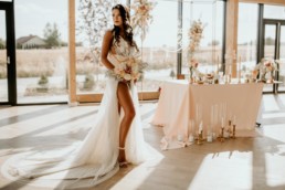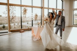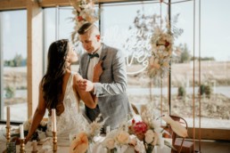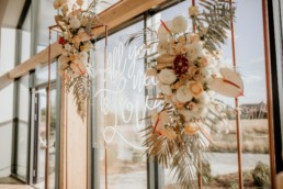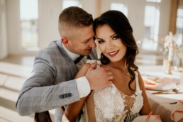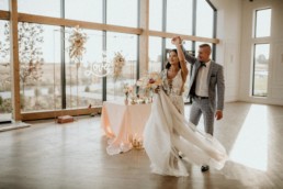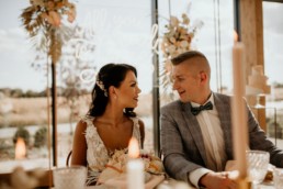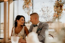 LIVING CORAL według Pantone jest kolorem roku 2019. Warto zwrócić uwagę, że kolor ten wprost emanuje energią i optymizmem. Co w połączeniu z niesamowitym słońcem wpadającym przez przeszklone ściany sali weselnej stworzyło niepowtarzalny klimat.