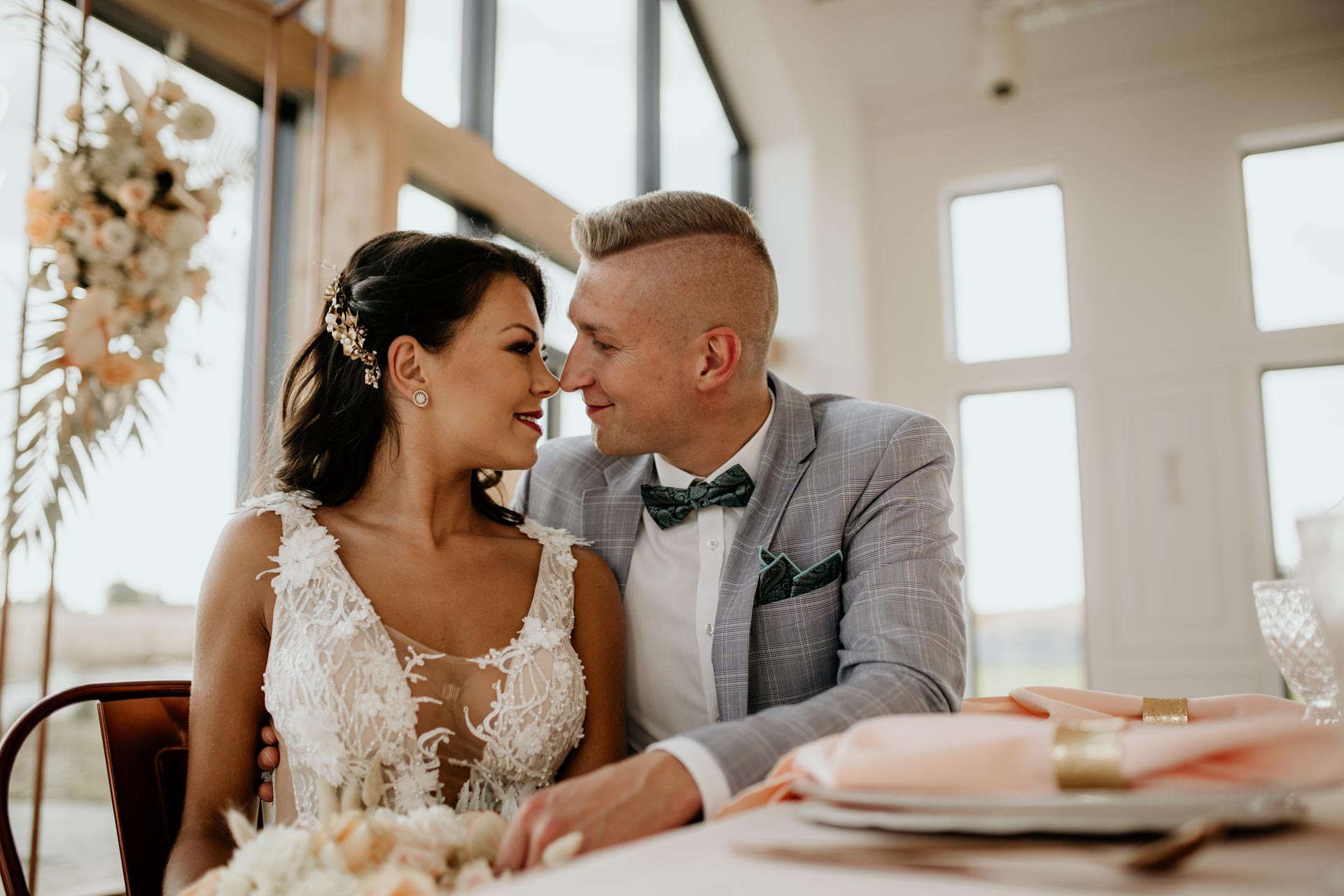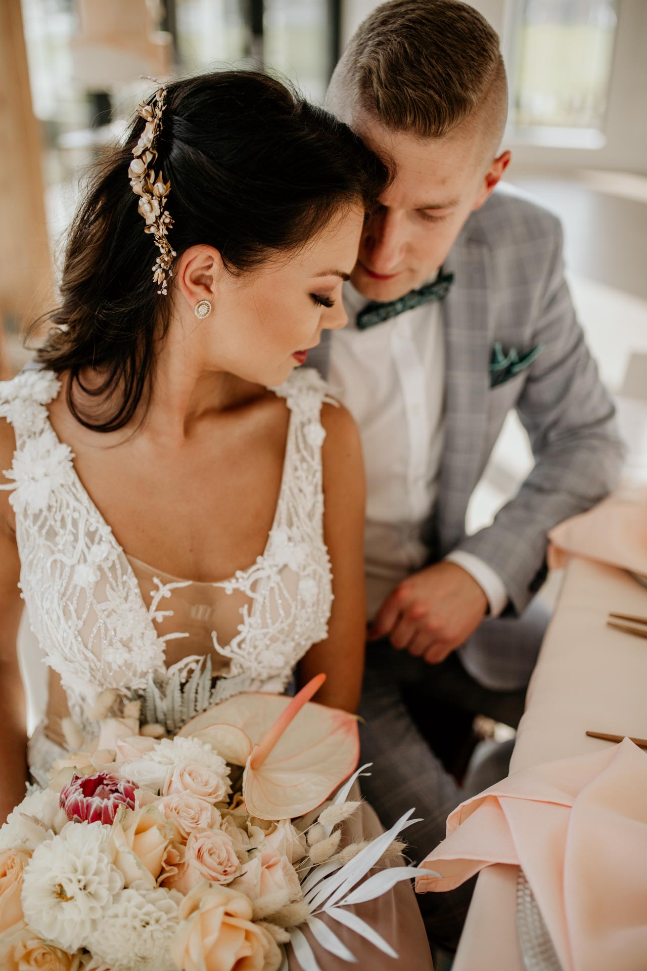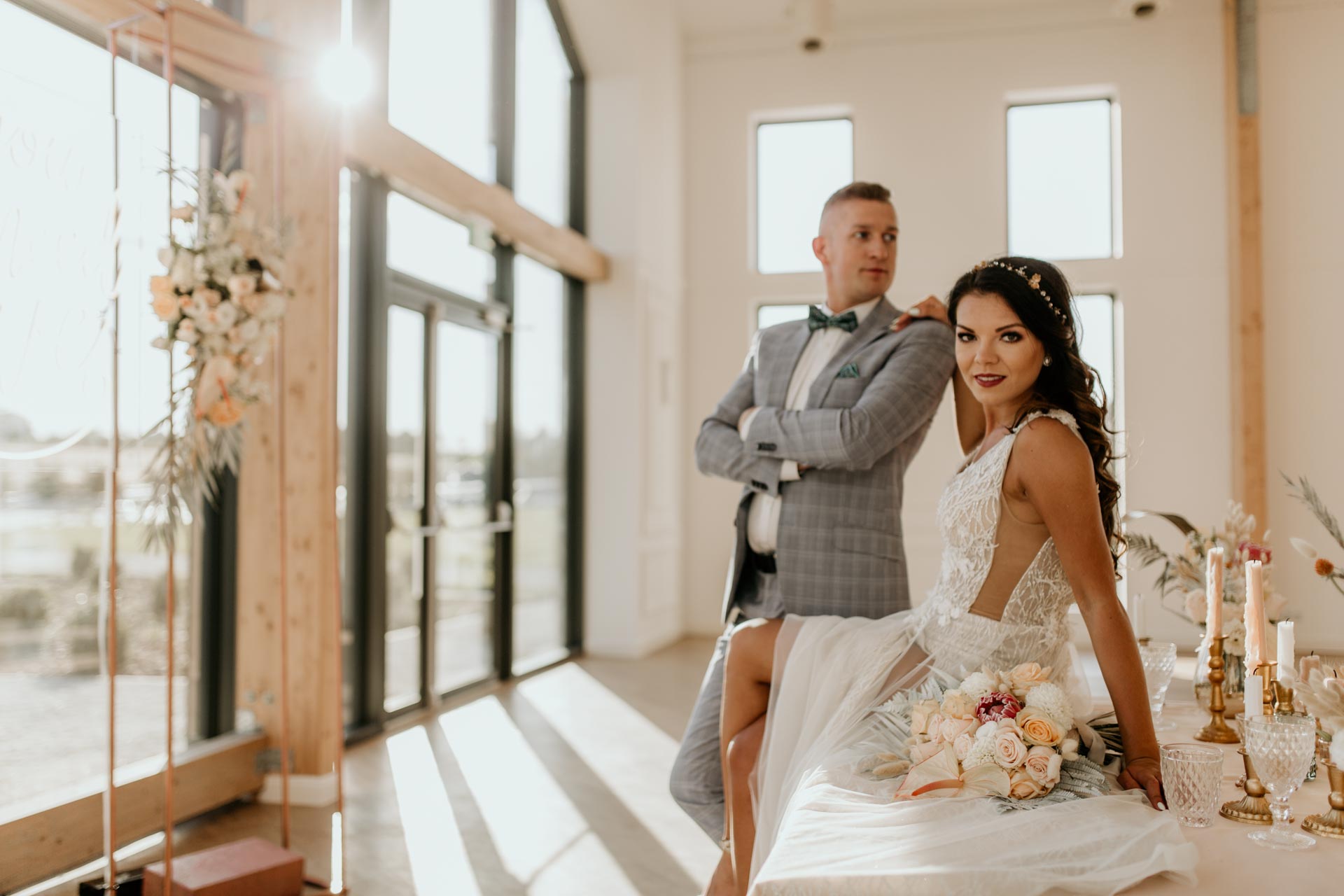 LIVING CORAL według Pantone jest kolorem roku 2019. Warto zwrócić uwagę, że kolor ten wprost emanuje energią i optymizmem. Co w połączeniu z niesamowitym słońcem wpadającym przez przeszklone ściany sali weselnej stworzyło niepowtarzalny klimat.