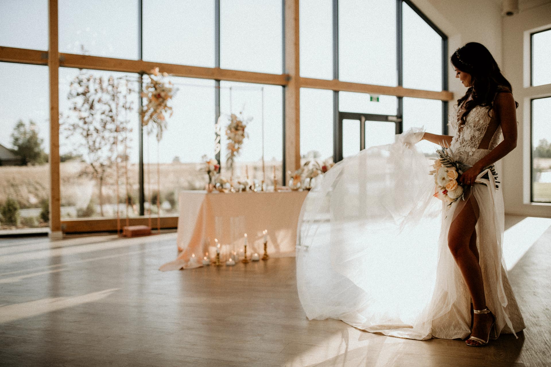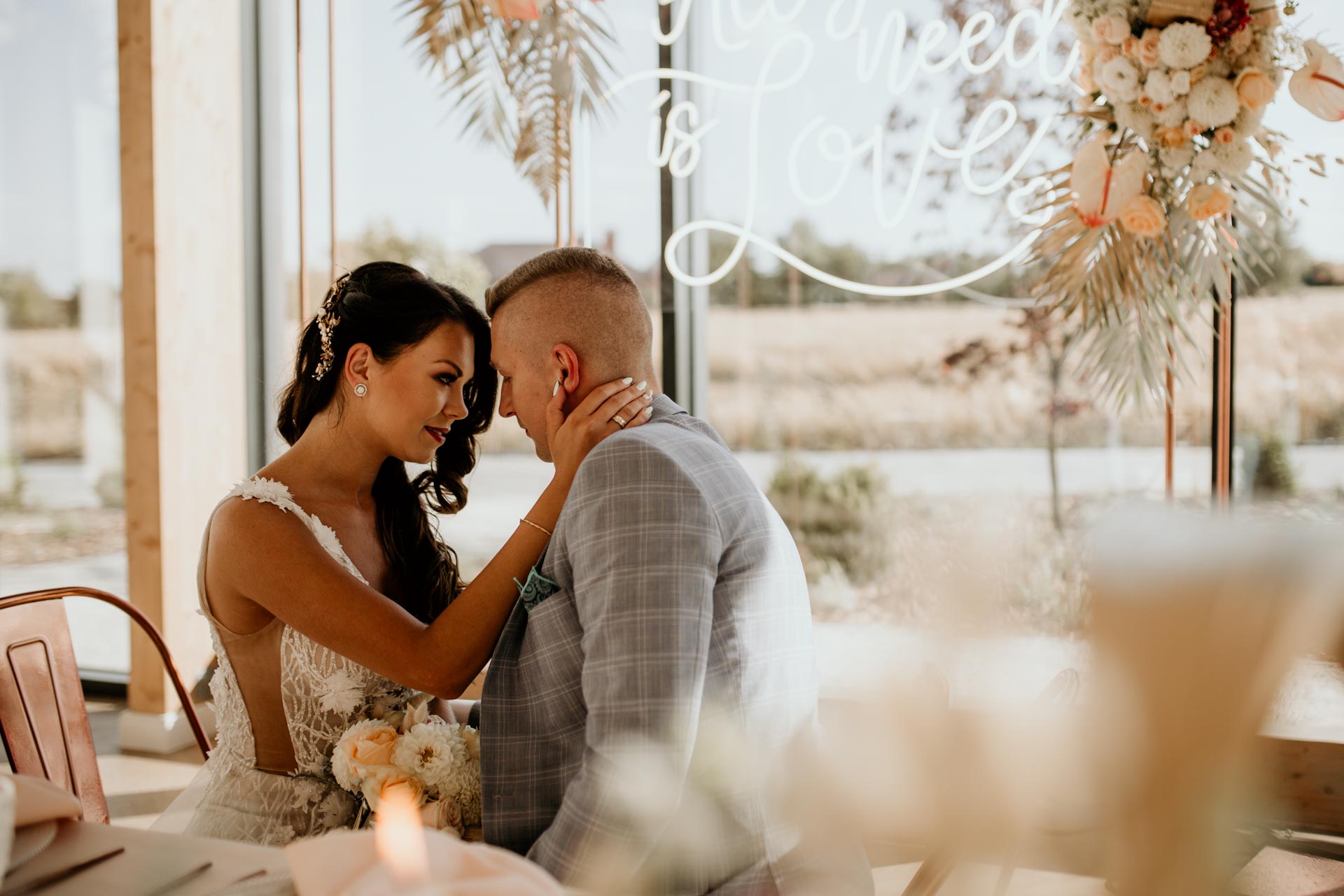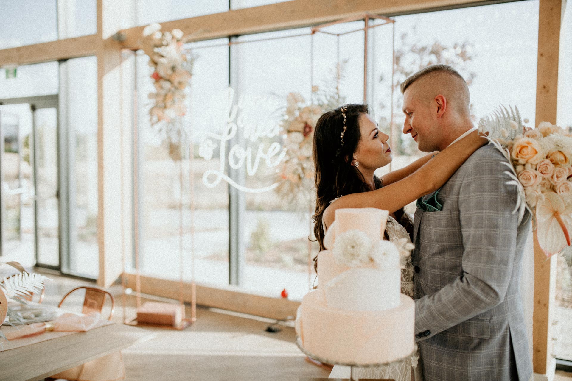 LIVING CORAL według Pantone jest kolorem roku 2019. Warto zwrócić uwagę, że kolor ten wprost emanuje energią i optymizmem. Co w połączeniu z niesamowitym słońcem wpadającym przez przeszklone ściany sali weselnej stworzyło niepowtarzalny klimat.
